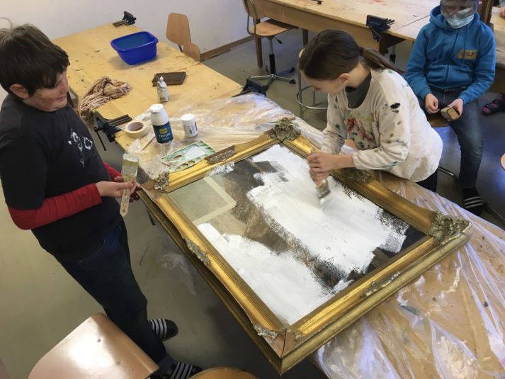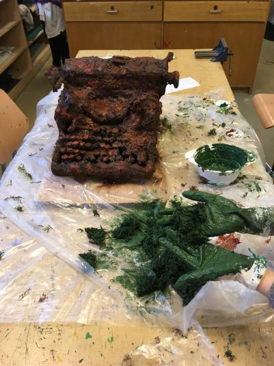 Entstanden sind diese fiktiven Artefakte bei mir im Fach Technisches Gestalten. Knapp zwei Monate hatte ich Zeit mit den SuS von zwei 4. Klassen die alten Gegenstände zu Artefakten der gesunkenen Titanic zu präparieren. Die grosse Herausforderung neben dem Zeitdruck waren die unterschiedlichen SuS, die abwechslungsweise an den Gegenständen arbeiteten. Sie bekamen anweisende Arbeitsschritte, um die verschiedenen Objekte zu bearbeiten, durften aber auch eigene Ideen für den Veränderungsprozess einbringen. Die Bearbeitungstechniken waren vielfältig und reichten von Ätzen mit Oxiden über Beschichten mit verschiedensten abgebundenen Materialien bis hin zum Textilverhärter, so dass die Patina eines Artefakts entstand.